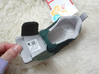 大きく開くのでとても履かせやすいですし、マジックテープで甲の高さも調節できます。素材も柔らかいので履き心地がよさそうです。(30代女性)