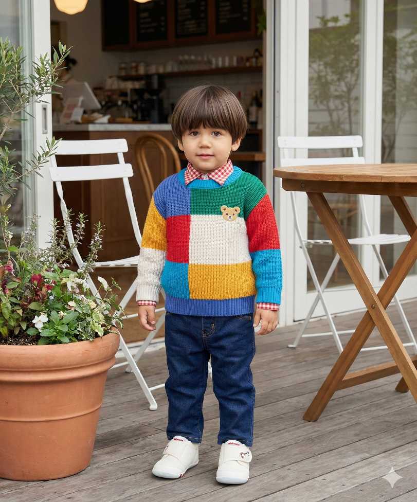 赤や緑など、ミキハウスならではのハッキリした色のファッションともマッチします。