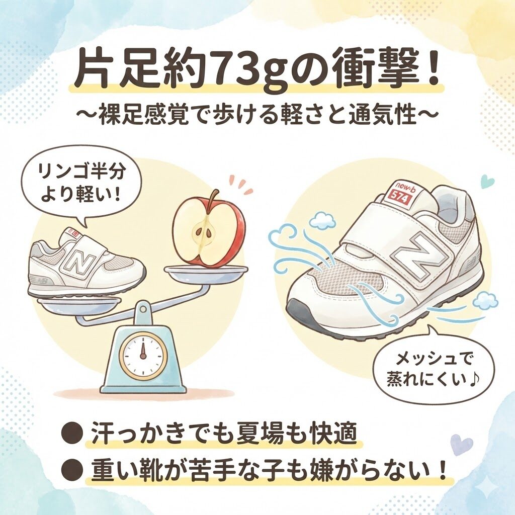 重い靴を嫌がる子でも、この軽さなら嫌がらずに履いてくれますよ。