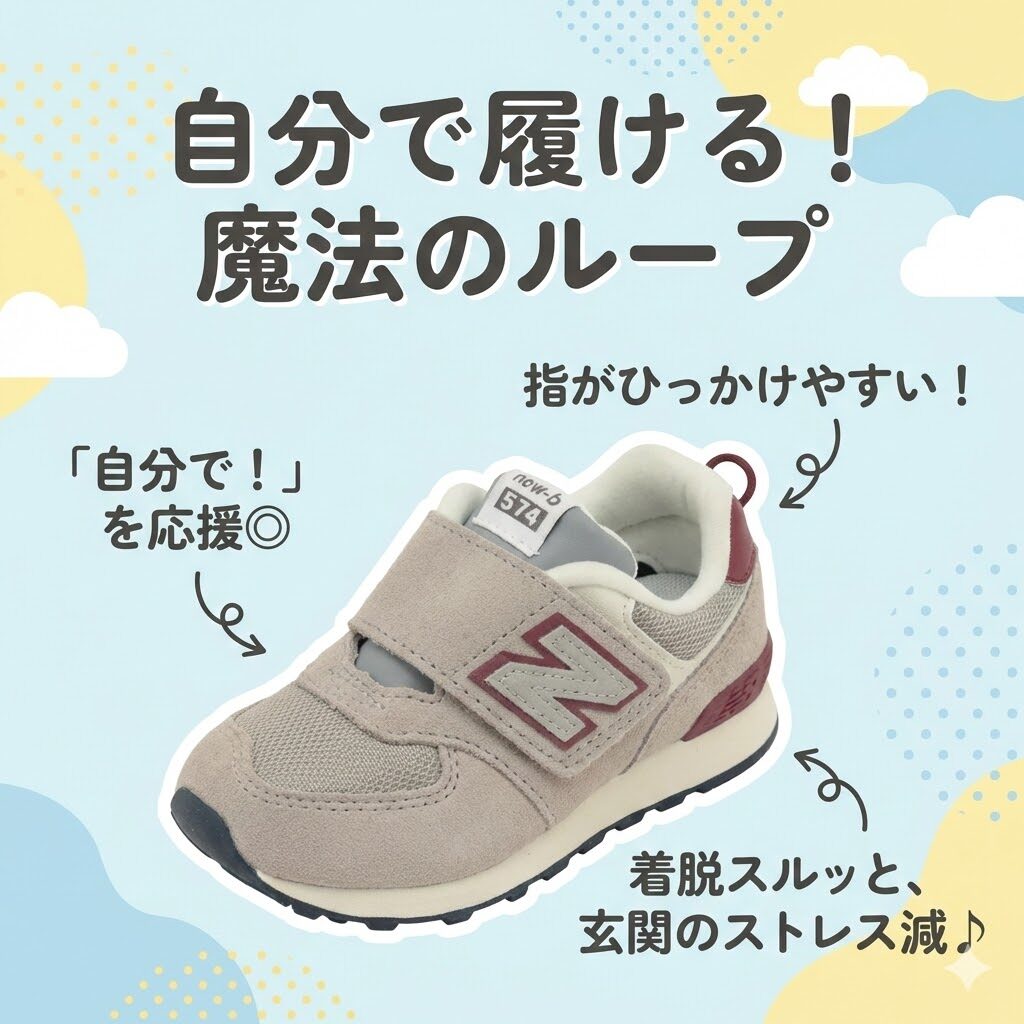 窮屈な靴を嫌がる子どもでも、574なら喜んで履いてくれることが多いです。