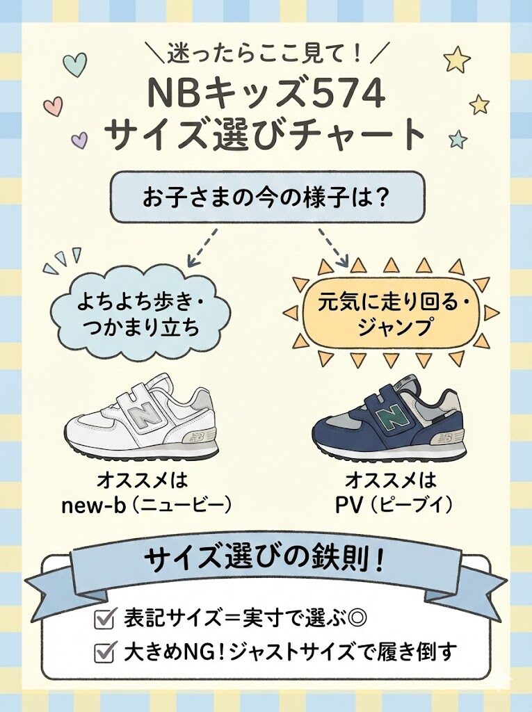 ニューバランスのキッズ574って見た目が可愛いけどサイズ感が難しそう