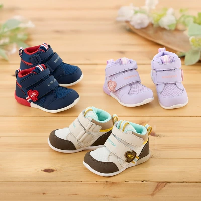 足首を支えるミドルカット仕様で、不安定な赤ちゃんの歩行を支えます。
