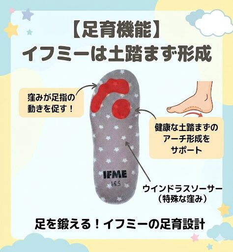 一方イフミーはウインドラスソーサーという特殊な窪みのある中敷きを採用しています。