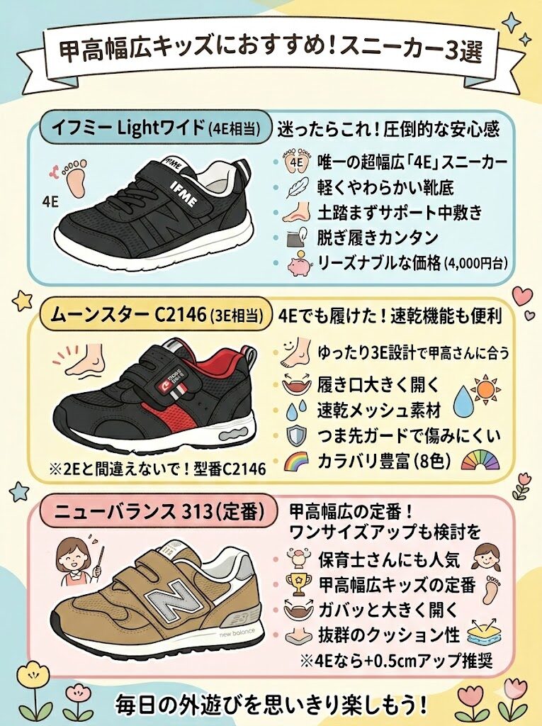 甲高幅広すぎて合う靴がなかなかない子にはまずこれを選びましょう。