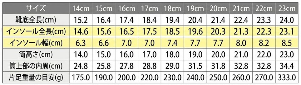 インソールのタテヨコの長さは以下の通りなので、つま先に0.5~1cmほど余裕のあるサイズを選びましょう。
